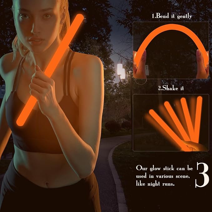 • 【Premium Quality and Sturdy Package】These huge light sticks are made of high- quality blend material,non-toxic,non flammable,not easy to leak and waterproof. They are packaged in a firm cardboard tube to ensure durability and protection from light and heat,sturdy package also will keep the integrity of quality glow sticks and prevents them from activating prematurely. Our glow sticks are safe to use, it’s a good choice for both indoor and outdoor activities