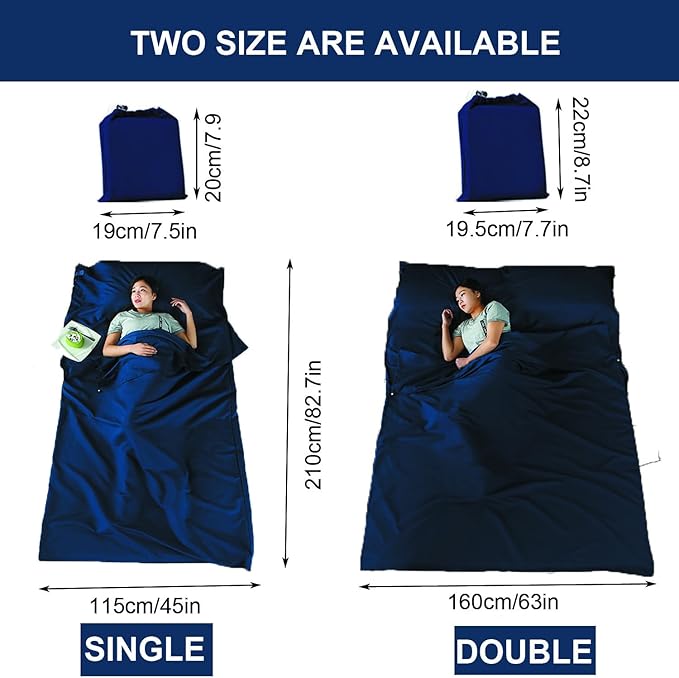 - PORTABLE TO CARRY:This lightweight and compact sleeping sack sheets is foldable, and the size after folding is 20x24cm (7.9x9.5"), only 2 lb (930g). Comes with a storage bag.You can storage it in your backpack. It will be your great travel and camping companion.