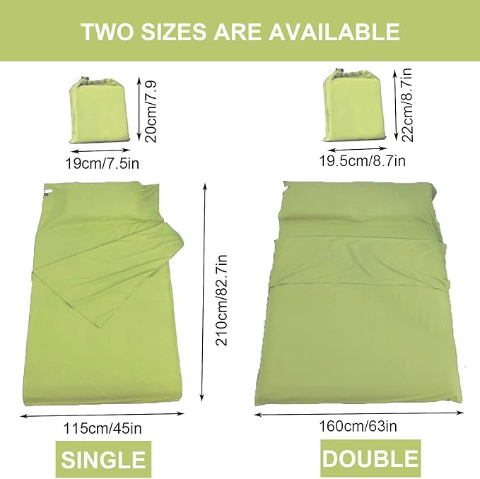 - PORTABLE TO CARRY:This lightweight and compact sleeping sack sheets is foldable, and the size after folding is 20x24cm (7.9x9.5"), only 2 lb (930g). Comes with a storage bag.You can storage it in your backpack. It will be your great travel and camping companion.