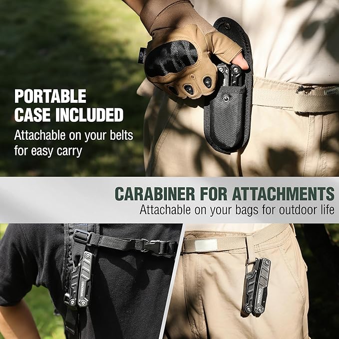 - Portable Sheath and Pocket Clip - When go outside for working, camping, or hiking, simply grab the pocket multitool and place it in the nylon sheath, which is attachable to your belt or bag. Or just easily attch the multi tools to your pocket.
