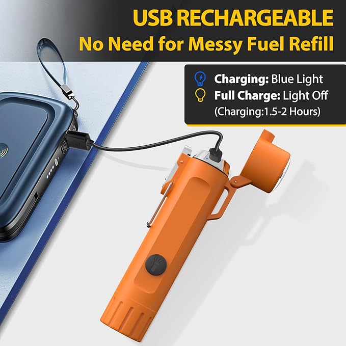 - ✨3-in-1 LED Lighters for Outdoor Emergencies: CAREVER merges three essential tools – lighter, flashlight, compass – into one compact device, ideal for any outdoor escapade. Whether you're igniting a campfire, BBQ, fireplace, candles, cigars, finding your way in the dark, or determining your direction, this multi-purpose tool won't let you down. Its vibrant orange color ensures it's easy to locate in your survival bag