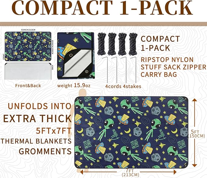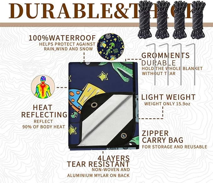 Heavy Duty Survival Blanket -Multifunctional Reflective Tarp Thermal Blanket - 60" x 83" Waterproof Sandproof for Camping Hiking Outdoors Multifunctional Emergency Blanket