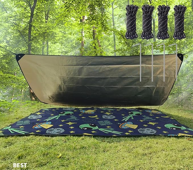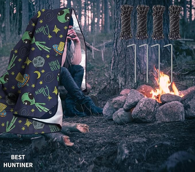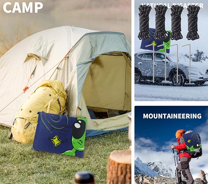 - ONE PACKAGE:1 survival tarp+4 tent stakes+4 tent cords+1 storage bag with draw string.