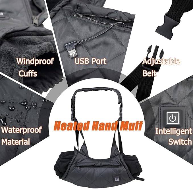- 【Heated Hand Warmer Pouch】In many winter outdoor activities, how to keep your cold hands warm in cold weather? This heated hand muff solves your problems. It contains heating pads, which can heat up quickly after plugging in the power bank【NO POWER BANK】. The portable hand muff is the perfect accessory to keep your hands warm while staying active in cold winter weather.