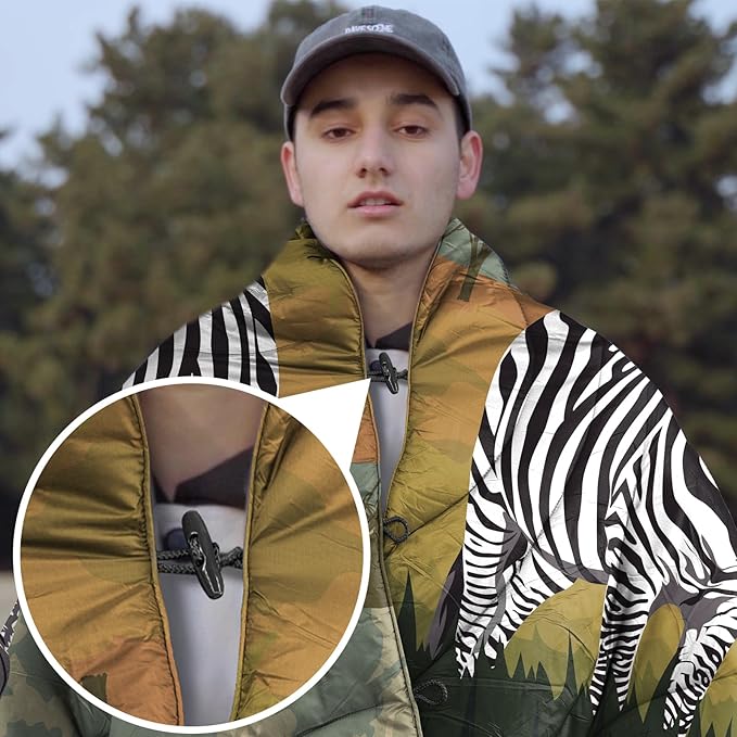 - Multipurpose Puffer Blanket and Poncho - This is a multi-purpose puffy blanket ultralight. In addition to being used as a warm camping blanket for sleeping for cold weather, the buttons on both sides combine to be used as a poncho, which is very convenient and can free your hands