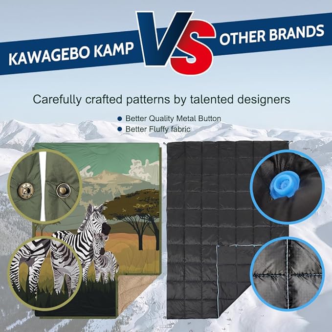 - 【Ultra Soft Sherpa Fleece】 - Made with thick sherpa fleece and quality materials ripstop polyester. The KawaGebo Kamp camping sherpa blanket is designed to keep you totally warm in just about any indoor or outdoor environment. Soft, warm and cozy enough, these outdoor camping blankets will provides comfort for a better sleep in rain, snow and cold weather.