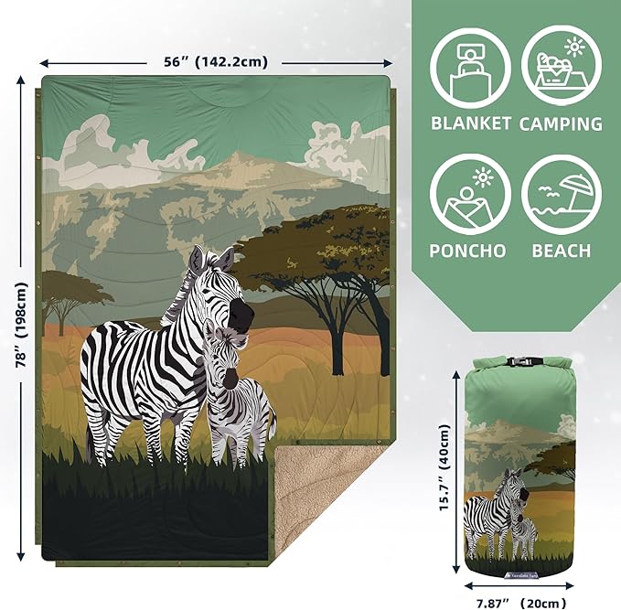 Outdoor Camping Blanket with Sherpa Lining, Extra Warm Thick Camp Blankets & Puffy Ultralight Soft Poncho DWR Camping Quilt for Cold Weather, Adventure,Sleeping,Backpacking 78"x 56"