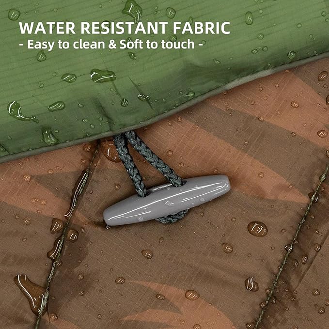 - 【LARGER & WAMER】The Down Alternative camping blanket is Lightweighter than normal single puffy blanket, with rip-stop polyester outside and cotton interior, which means good water resistance and keeps warm better.