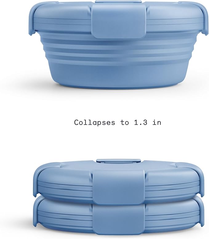 - Collapsible bowl: It’s literally never been easier (or more fun) to prep, store, and take food on the go! This compact bowl collapses down to just 1.3 inches. The 36 oz Stojo Bowl holds up to 4.5 cups of eats and is made for the kitchen as much as the commute. It stores nested and flat to save space, then pops open to upgrade your meal prep, leftovers, and work lunches. This Aquamarine Blue container is going to look right at home in your kitchen cabinet.