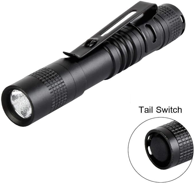 - [EASY TO USE] Simple on/off switch quickly turns on the small pen light in the dark in less than a second. The pocket flashlight is perfect for camping, hiking, night fishing, night hiking, camping and more.
