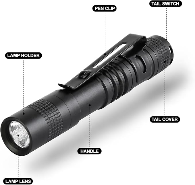 - [HIGH QUALITY] Made of high quality aluminum, the pen light flashlight ensures that it is waterproof, scratch-resistant and drop-resistant. The mini flashlight is sturdy and durable enough for long time daily use.