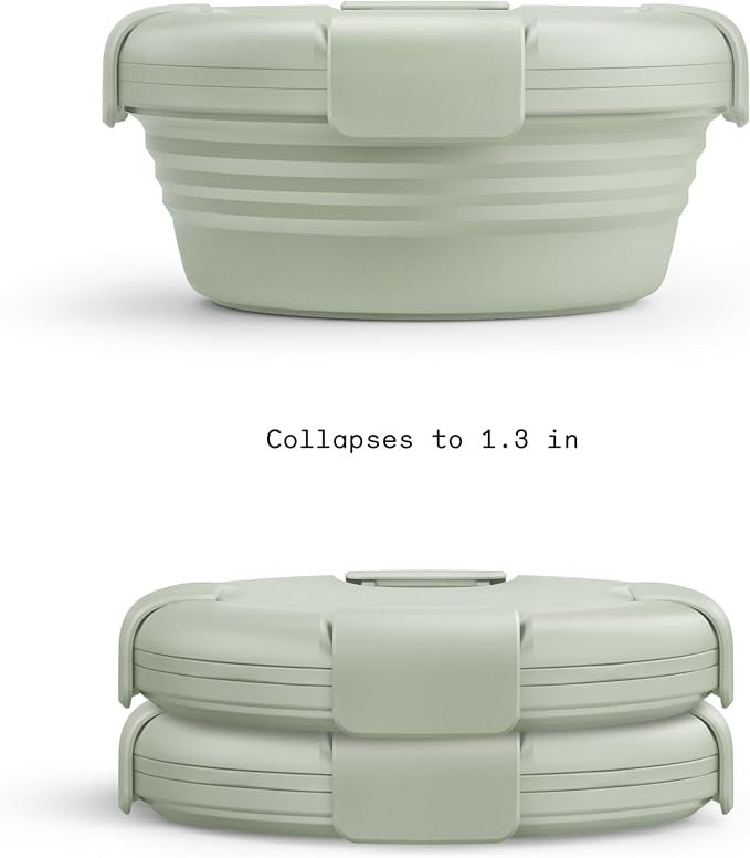 - Collapsible bowl: It’s literally never been easier (or more fun) to prep, store, and take food on the go! This compact bowl collapses down to just 1.3 inches. The 36 oz Stojo Bowl holds up to 4.5 cups of eats and is made for the kitchen as much as the commute. It stores nested and flat to save space, then pops open to upgrade your meal prep, leftovers, and work lunches. This Aquamarine Blue container is going to look right at home in your kitchen cabinet.