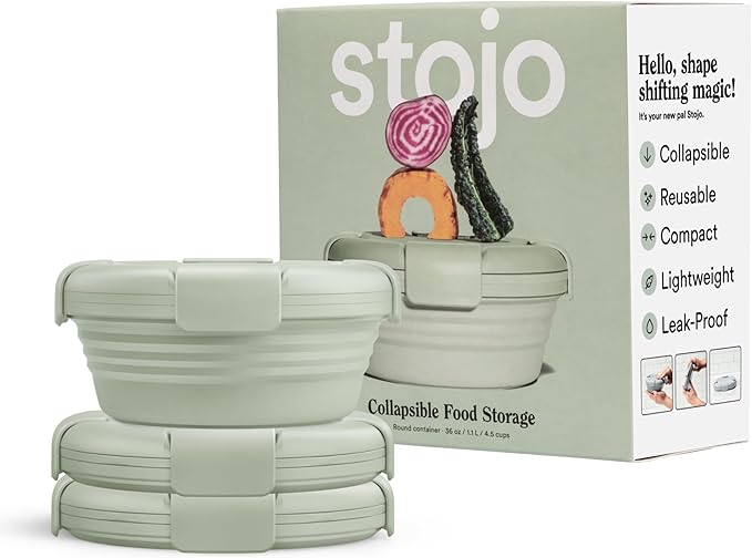 STOJO Collapsible Bowl - Opaque Sets- Reusable Silicone Bowl (3, Sage)