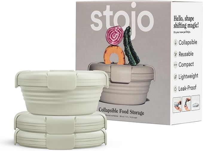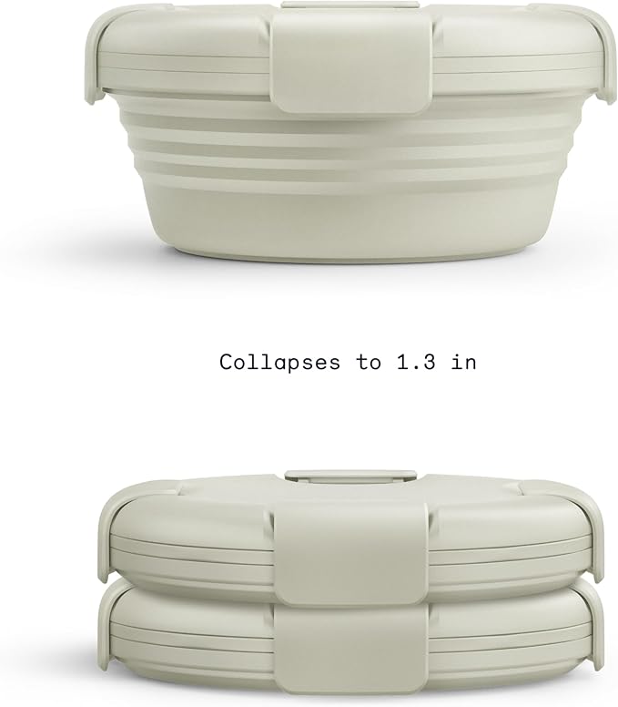 - Collapsible bowl: It’s literally never been easier (or more fun) to prep, store, and take food on the go! This compact bowl collapses down to just 1.3 inches. The 36 oz Stojo Bowl holds up to 4.5 cups of eats and is made for the kitchen as much as the commute. It stores nested and flat to save space, then pops open to upgrade your meal prep, leftovers, and work lunches. This Aquamarine Blue container is going to look right at home in your kitchen cabinet.