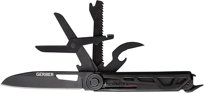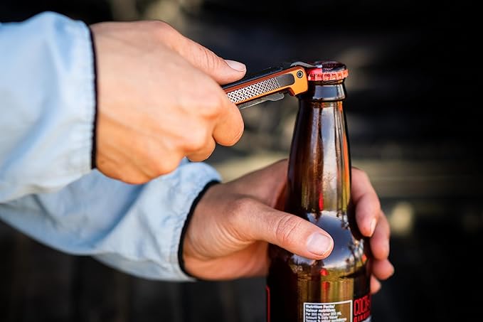 - 7-IN-1 MULTI-TOOL: Features a plain edge blade with frame lock, hammer, scissors, saw, bottle opener and pry bar, can and package opener, and pocket clip