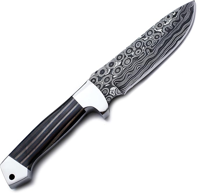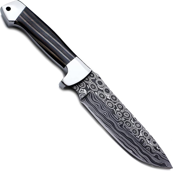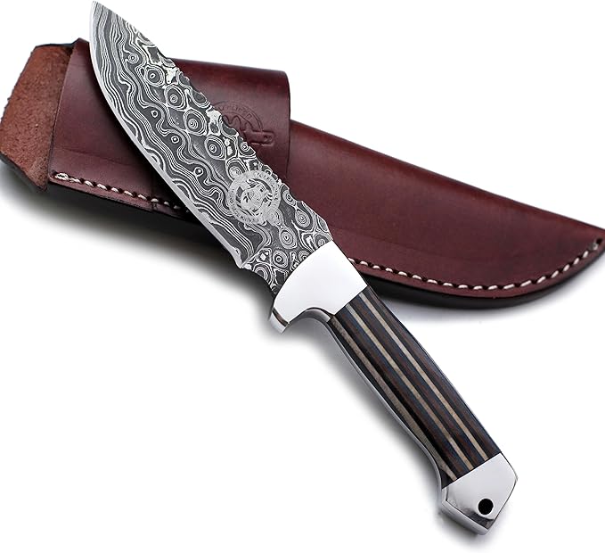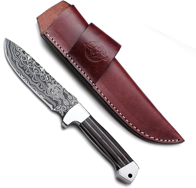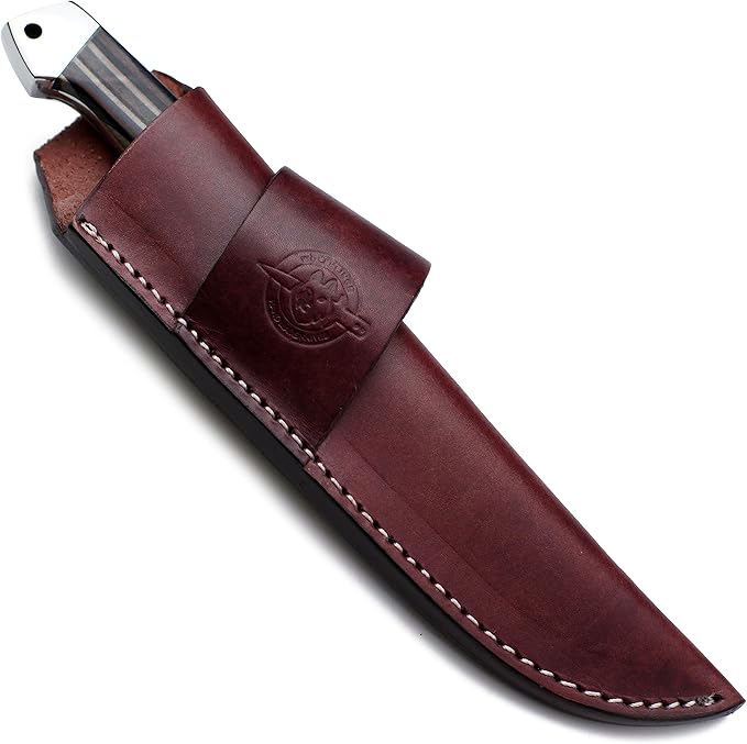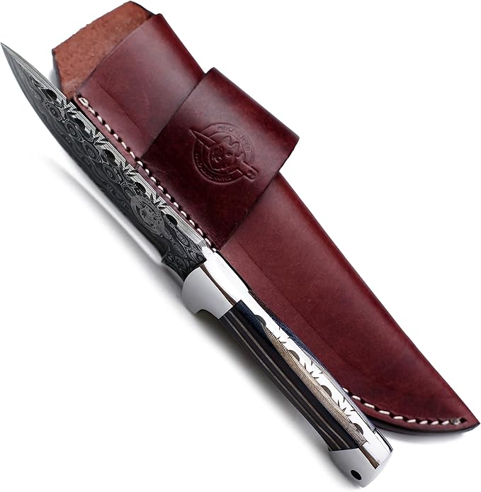 Handmade Damascus Steel Knife for Hunting,Survival,Camping,Bushcraft,and Fishing Fixed Blade with Drop Point-Full Tang Micarta Handle with Cowhide-Leather Sheath - WKD-798
