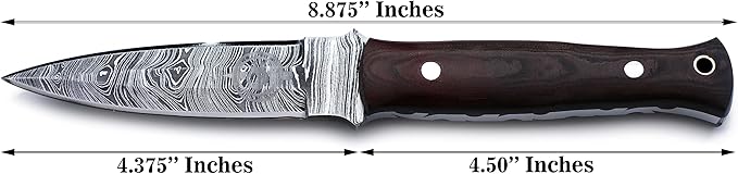 - 🗡:::KNIFE DIMENSIONS: It is best as a Hunting, Survival, Camping, Skinning and Tracking Knife a complete Package of an Outdoor Adventures. 8.875 inch Total Length, 4.375 inches Blade and 4.5 inches Handle.
