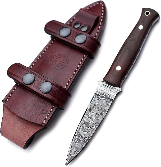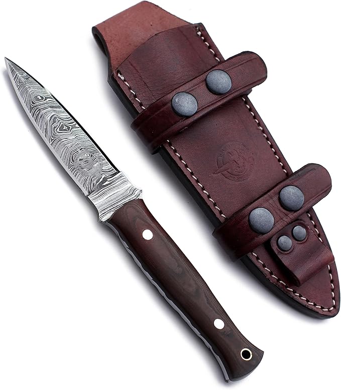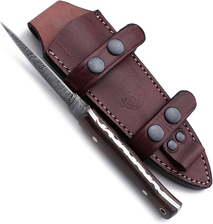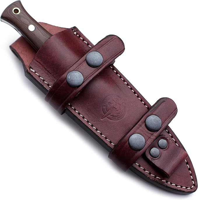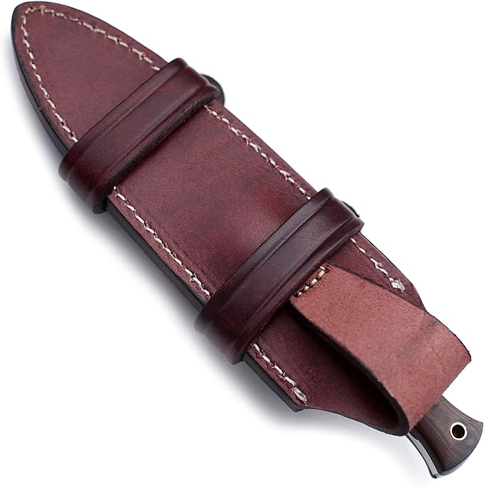 - 🎁Sheath Style: Designed for vertical carry on the right and OWB on the left, the premium vintage brown leather sheath is hand-carved, tooled, and dyed. It features welted construction with nylon stitching, offering a high-quality, handcrafted protective belt sheath for secure and accessible carry.Sheath Included with Every Knife Purchase