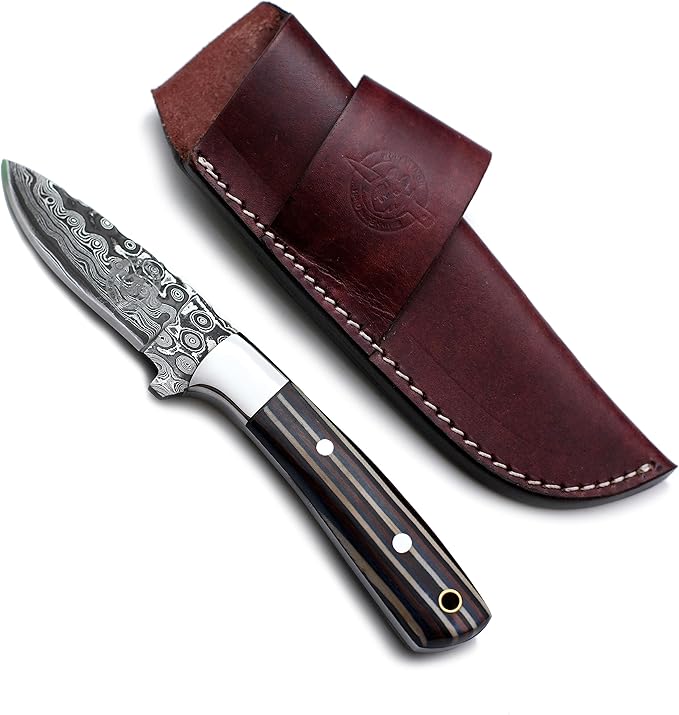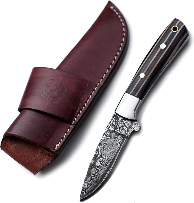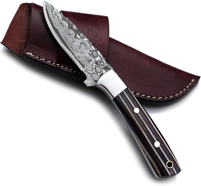 Handmade Damascus Steel Knife for Hunting,Survival,Camping,Bushcraft,and Fishing,Fixed Blade with Drop Point Full Tang Micarta Handle, Leather Sheath - WKD-808