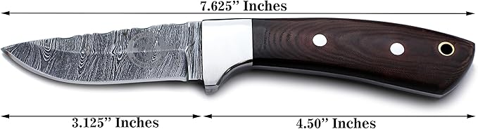 - 🗡:KNIFE DIMENSIONS: It is best as a Hunting, Survival, Camping, Skinning and Tracking Knife a complete Package of an Outdoor Adventures. 7.625 inch Total Length, 3.125 inches Blade and 4.5 inches Handle.
