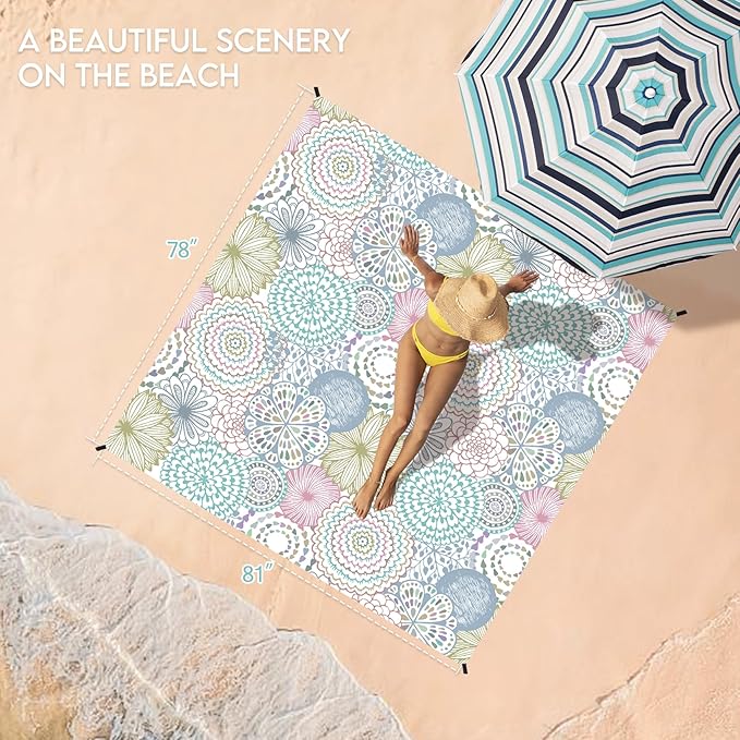 BYDOLL Beach Blanket 78''X81'' 4-7 Adults Oversized Lightweight Waterproof Sandproof Blanket for Beach Large Picnic Mat Travel Camping