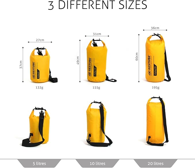 - SPACIOUS YET COMPACT DESIGN: Despite its generous 20-liter capacity - spacious enough for a large tent, paddle gear, or camping essentials - the Restube Drybag remains compact and easy to carry, proving its unparalleled utility over rival brands.
