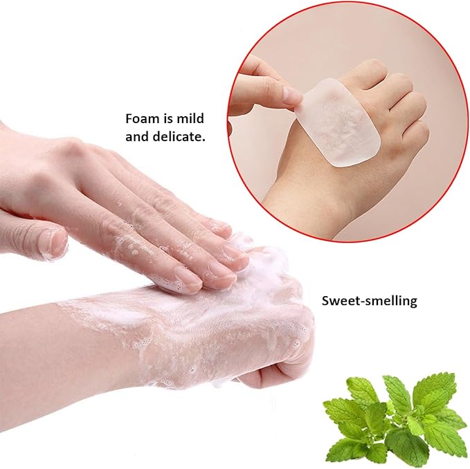 - Easy to Use: The outer box of the Mini soap sheets adopts bayonet design, which is simple to open and close. Just take out one piece and gently rub it with water to melt it. It has many foam, which can wash away dust, grease and stains.