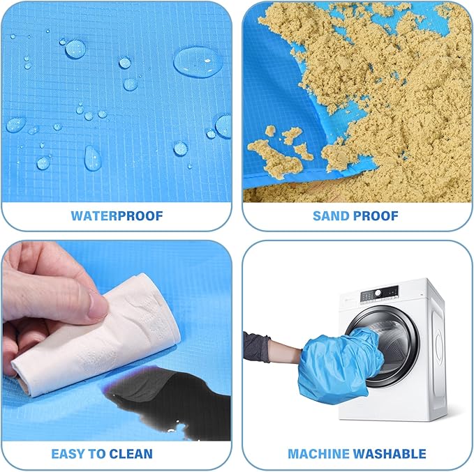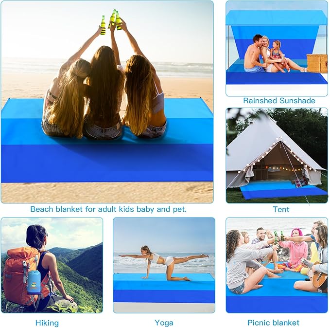 - 🏕️Beach Blanket Oversized:Good tear resistance,dry quickly.Can also be used as a rain shed,sunshade,tent,toddler crawl,emergency mat.Feel comfortable to lying down.Won't irritate your skin,better professional fabric sewing.
