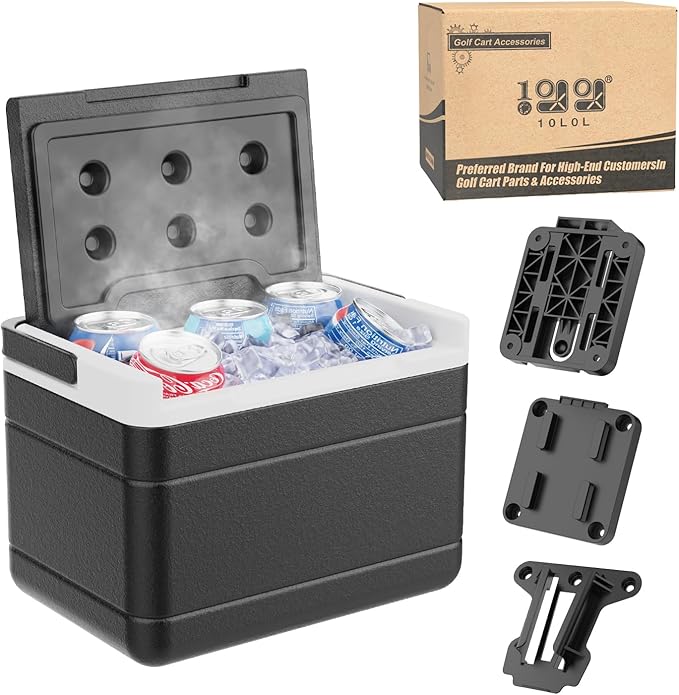 - Universal Golf Cart Cooler: 10L0L Golf Cart ice cooler with universal mounting brackrt kit Fits all golf carts (for YAMAHA G22/ Club Car DS & prensedent /EZGO TXT & RXV etc).Note: Installation requires drilling