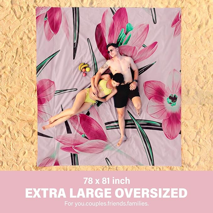 - Oversized Extra Large Beach Blanket :78" X 81"Size,1-7 Adults in total,Made by parachute fabric,More than 30% larger than other blankets,12 oz easy to carry!