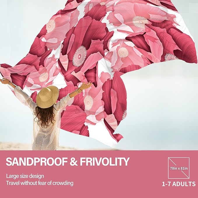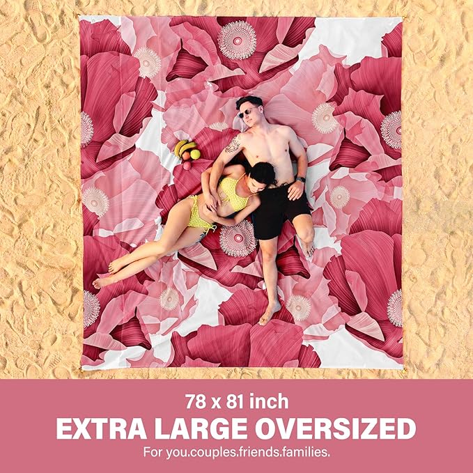 - Oversized Extra Large Beach Blanket :78" X 81"Size,1-7 Adults in total,Made by parachute fabric,More than 30% larger than other blankets,12 oz easy to carry!