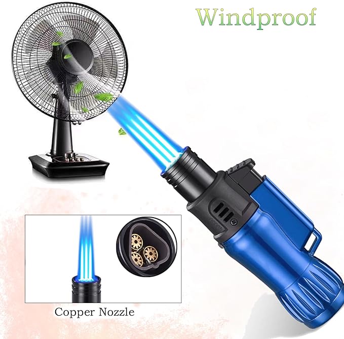 - 🔥【Powerful Triple Flames】Boasting a remarkable triple-jet design, this lighter delivers high-temperature, robust flames, ensuring effortless ignition for campfires, outdoor stoves, barbecues, or wilderness fire-starting. The combination of three flames makes lighting up a breeze.
