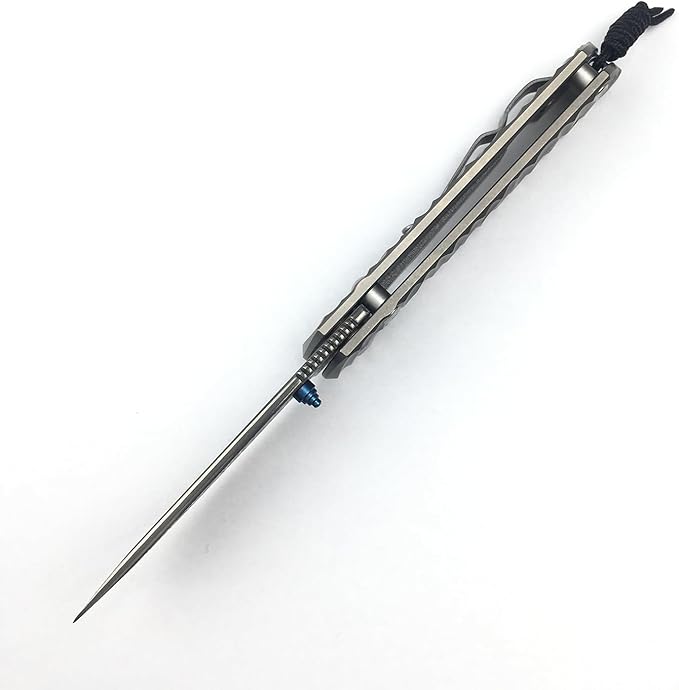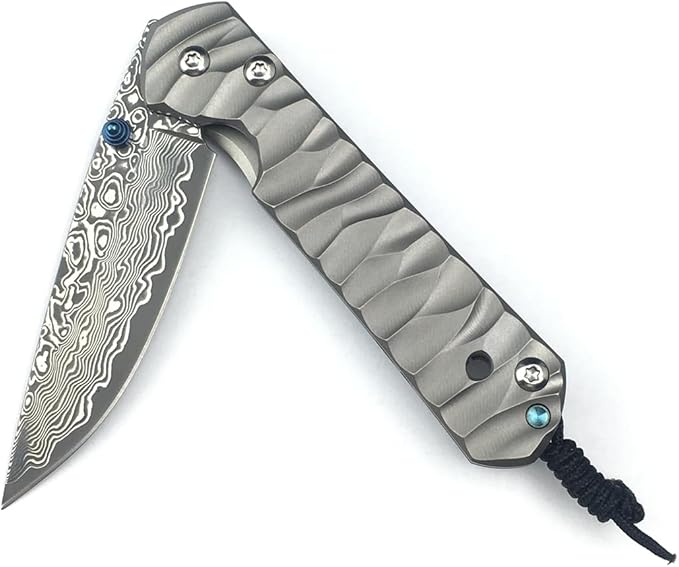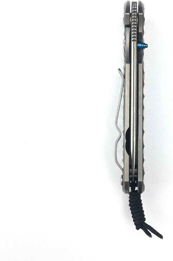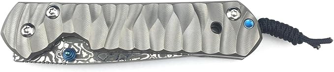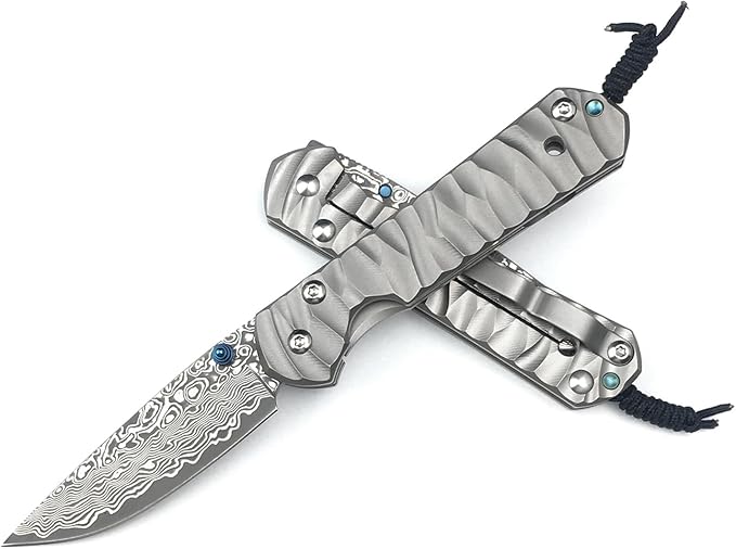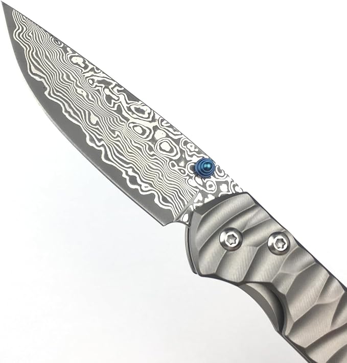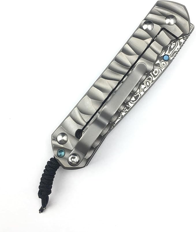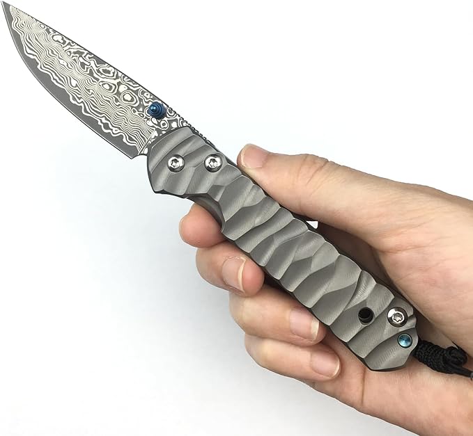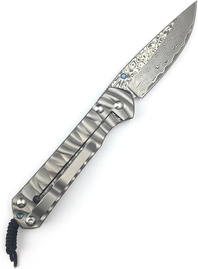 - 【Damascus Pocket Knife Size】 Opened length: 6.7’’. Folded length: 3.9’’. Blade length: 2.64’’. Blade width: 0.8’’. Blade thickness: 0.11’’. Weight: 2.58 oz/73.4g. Blade material: damascus steel. Handle material: titanium alloy.