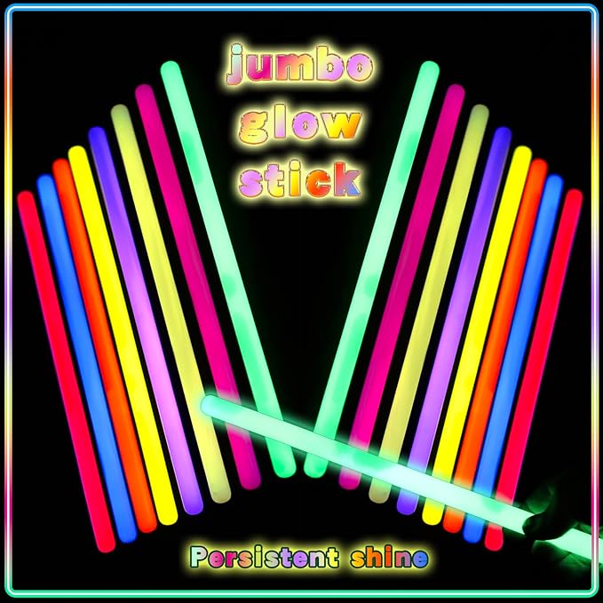 - 🎄Colorful options: Each box contains 20 giant glow sticks, with a total of eight colors to choose from, including yellow, blue, pink, orange, green, white, red and purple. Meet the needs of different occasions and personal preferences.
