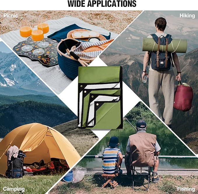- Wide Applications: The extra large emergency blanket is ideal for camping, hiking, fishing, picnic, barbecue and other outdoor activities. Its highly reflective aluminum on the back side makes it extremely useful for emergency signaling.