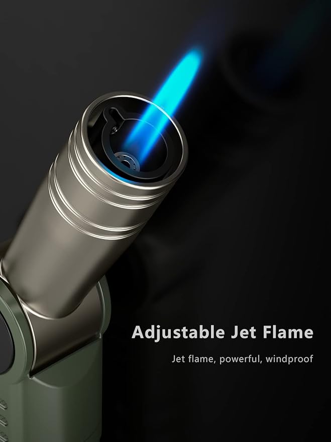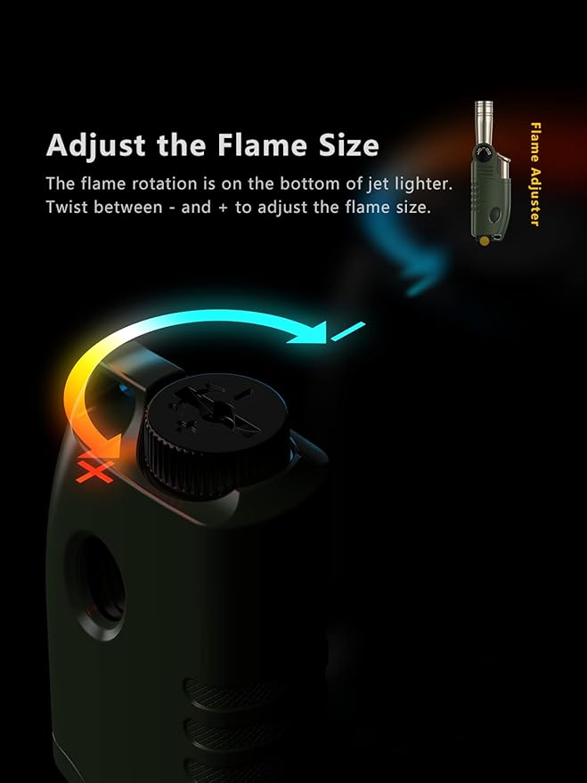 - Adjustable Flame - Easily adjust the flame by turning the adjustment knob under the lighter, no tools required. Please stay away from the skin to avoid burning.