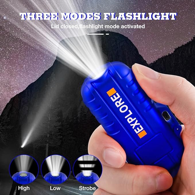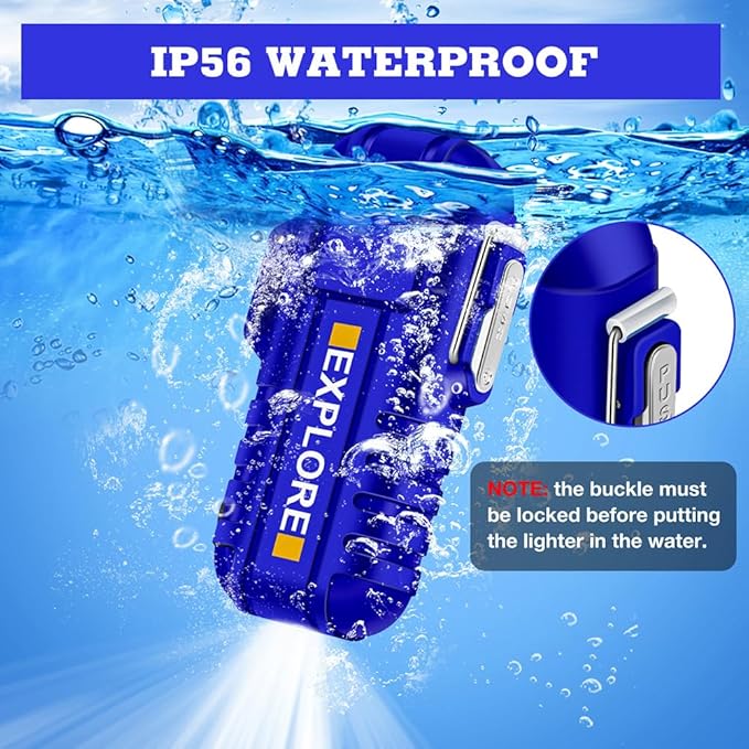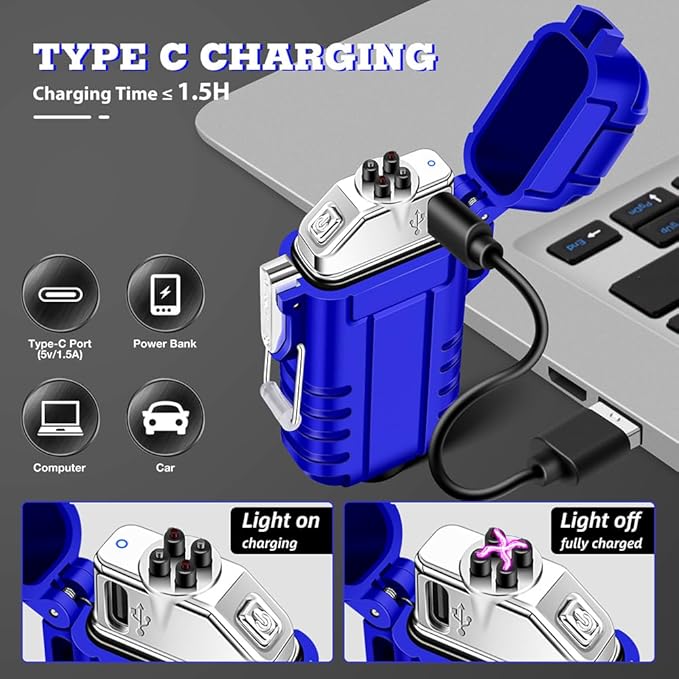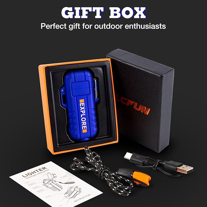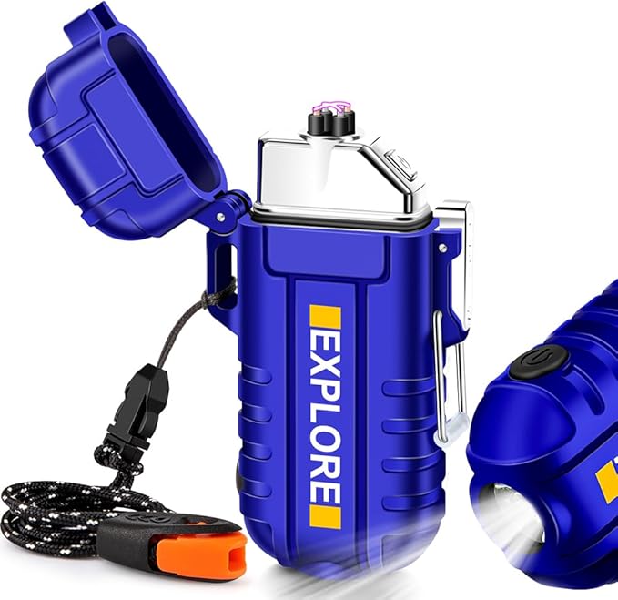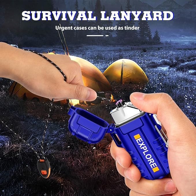 - Main Features: IP-56 dust-proof and waterproof lighter, dual arc windproof lighter, Type-C rechargeable lighter, 3 modes flashlight camping lighter and survival lanyard & whistle