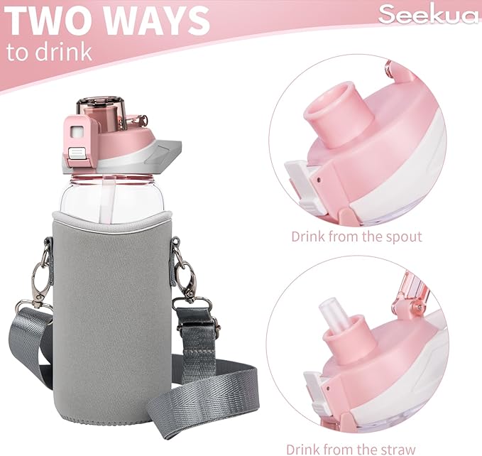 - EASY TO CARRY - The sports bottle comes with a silicone boot and a neoprene sleeve which can supply impact protection. The detachable shoulder strap for hands-free carrying. Perfect for home, school, office, gym, travel, hiking, bicycle, or other outdoor activities.
