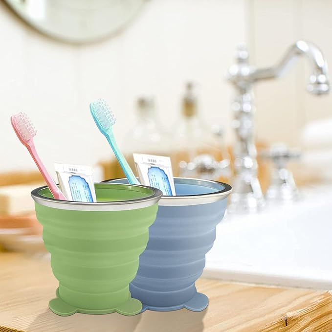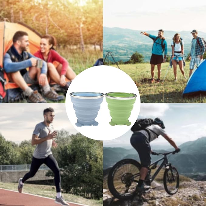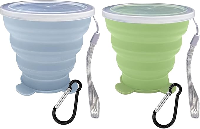 - 🥛 2 Pcs Collapsible Cup - Silicone Small Foldable Cup-Expandable Folding Drinking Cup -Reusable Portable Mugs Cup with Lids For Travel, Camping, Hiking, Survival, Holiday Vacation, Outdoor Sports