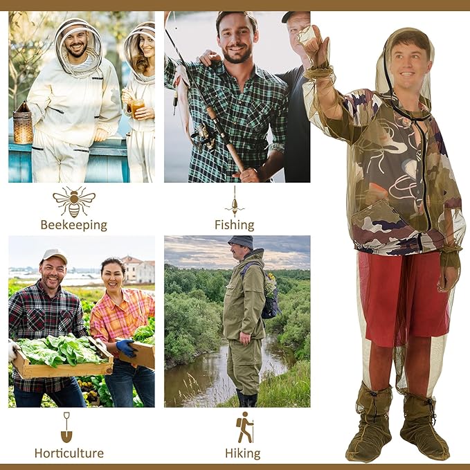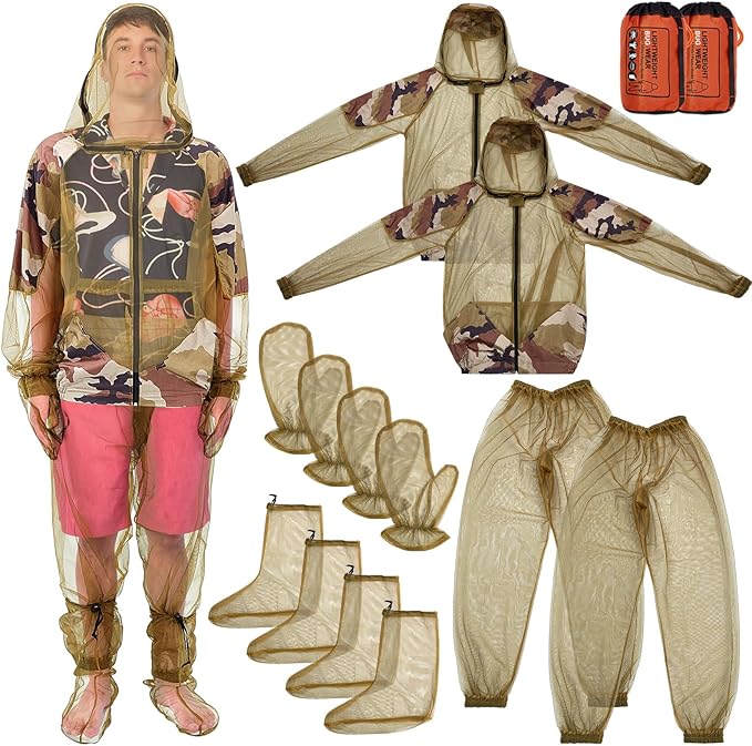 - What You Will Receive: the package contains 2 sets of fine mesh full body clothing, namely 2 piece of net jackets with hood, 2 pieces of net pants, 2 pairs of mittens and 2 pairs of socks, providing full protection during camping, hiking, gardening, fishing and so on