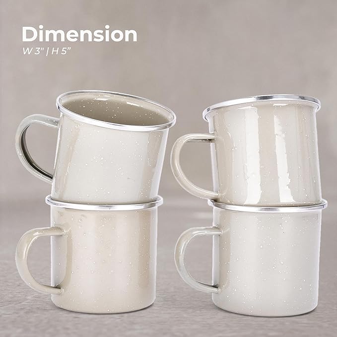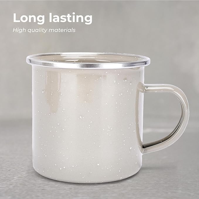 - COMFORTABLE GRIP AND TEMPERATURE RETENTION: Our enamel coffee mugs set features open handles for a comfortable grip. The superior insulation of the enameled carbon steel material keeps your drinks at the perfect temperature