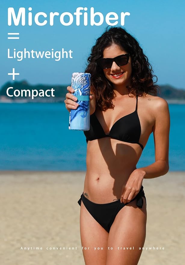- LIGHTWEIGHT AND PORTABLE: The microfiber beach towels are made of ultra fine microfiber material that is incredibly thin and lightweight. They come with a convenient carrying strap that makes it easy to take them with you wherever you go. When folded, they are as small as a mobile phone and can easily fit in your pocket or beach bag