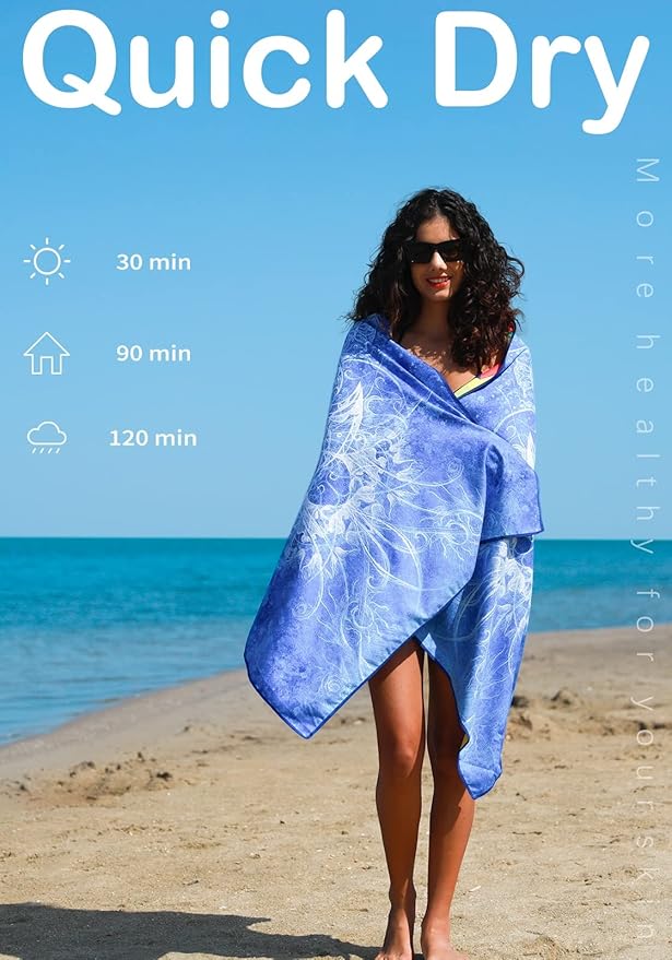 - HIGHLY ABSORBENT AND QUICK DRY: The microfiber beach towels are designed to quickly absorb water from your body, leaving you feeling dry and refreshed. Thanks to their unique microfiber construction, they dry up quickly, making them the perfect choice for a day at the beach or pool