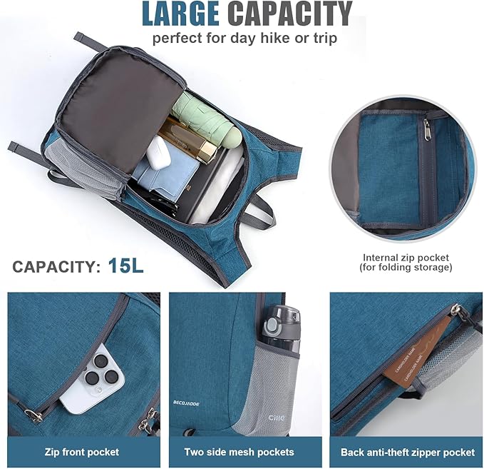- 【Widely Used】The ultralight hiking daypack is good for a comfortable overseas plane trip, day city excursion, day hiking, weekend getaway and daily use. You can carry 1L water bottle, some snacks, and a hat, etc. Holds a lot without being too oversized and bulky. It is perfect for short hikes, work-home commutes and go to the park on weekends.
