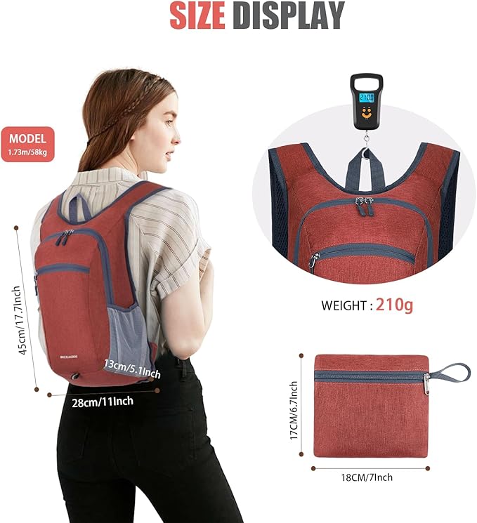- 【Packable Backpack】Packs up super mini. The folded size is only 7 inch x 6 inch. You can pack the entire backpack into a small clutch. A nice small backpack that can be used for daily excursions and easily fits in luggage.