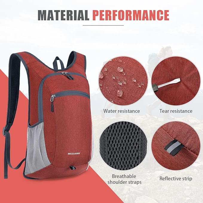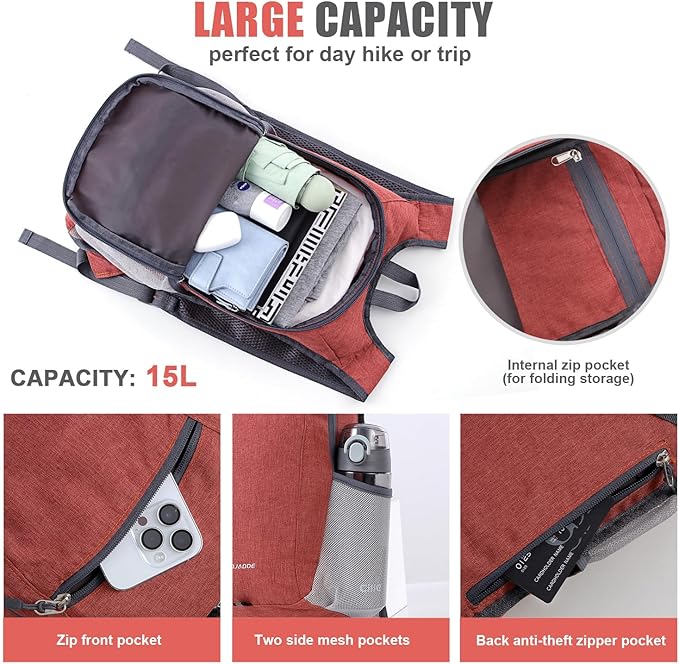 15L Hiking Backpack Small Travel Backpack Lightweight Packable Backpacks Casual Daypack for Women and Men, Red