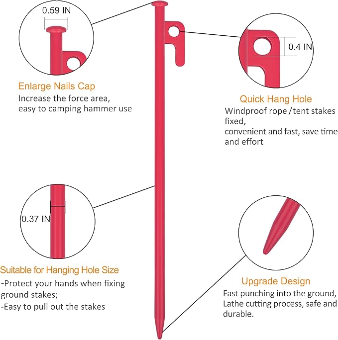 - 【Strong Holding Power】The large head and sharp end of the nail make it easy to penetrate hard or rocky ground, in case of hurt yourself when use them