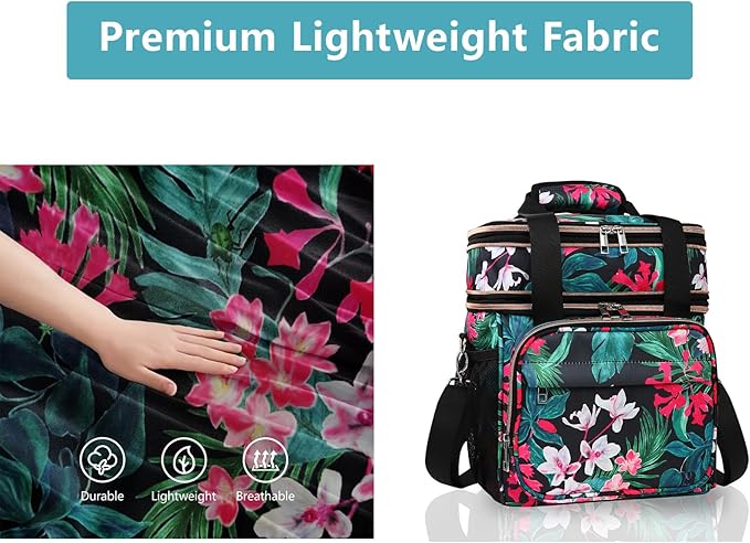 GLENKEY Expandable Lightweight Insulated Lunch Box for Women, Double Deck Large Lunch Bag Leakproof Soft Cooler Bags with Shoulder Strap for Adults Work Office Flight Beach Travel, Floral, 16L