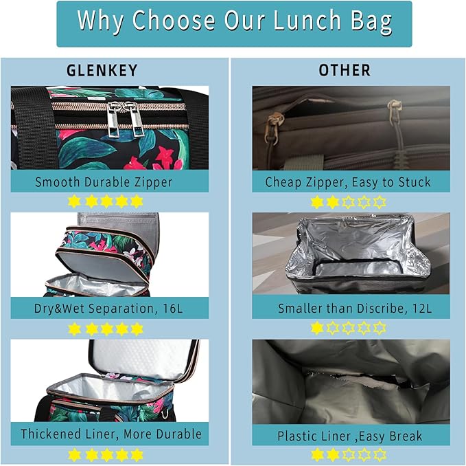 - Versatile Lunch Box: Well-padded shoulder strap and sturdy handles make the large lunch box easy to transport even when fully loaded. GLENKEY heavy duty lunch cooler bag is a spacious, comfortable lunch cooler