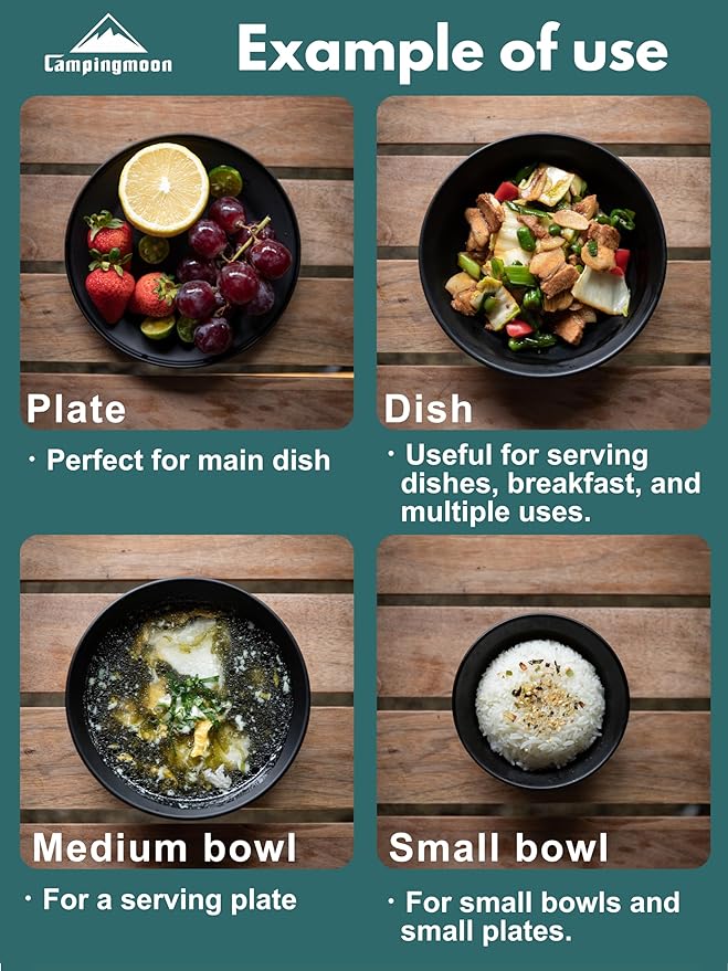 CAMPINGMOON Camping Plates 8pcs Black BKS395-2S